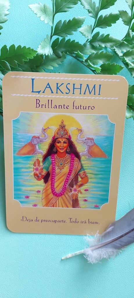 La carta elegida al azar del mazo “El Oráculo de las Diosas” nos muestra a Lakshmi que es una hermosa y protectora Diosa hindú que trae abundancia a todos quienes recurran a ella.