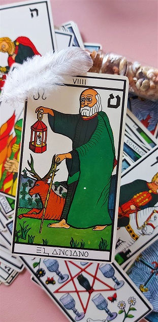 Su nombre “El Anciano”, que en el tarot Rider Waite es “El Ermitaño”.