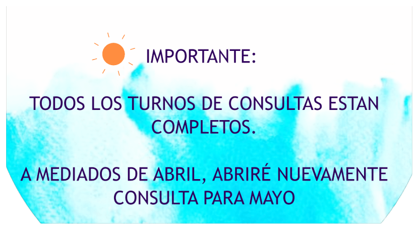 PARA QUIENES ESTAN PREGUNTANDO POR LOS TURNOS PARA EL MES DE MAYO LES COMENTO QUE AUN NO LOS ESTOY DANDO.