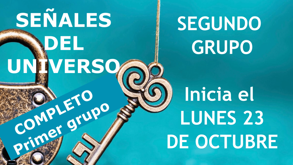 RECUERDA QUE YA ESTA ABIERTO EL SEGUNDO GRUPO DEL CURSO “SEÑALES DEL UNIVERSO” QUE COMENZARÁ LA PROXIMA SEMANA (LUNES 23 DE OCTUBRE) PUESTO QUE EL SEGUNDO GRUPO YA SE COMPLETO.